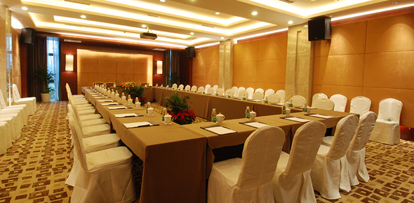 位于酒店会议区一楼,全厅面积:43平米(长:8米、宽:5.4米、层高:3.2米),可容纳16人。会议室含有无线宽带上网、智能照明、音响设备等现代智能视听及商务设施。