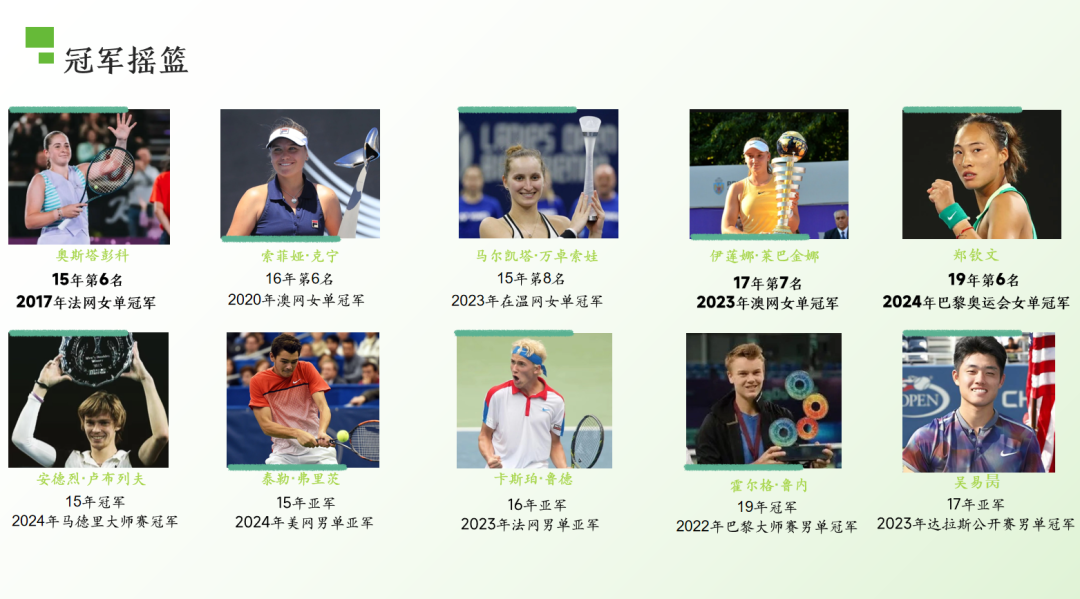 自2015年创办以来,国际网联世界网球巡回赛青少年年终总决赛始终秉承“筑梦未来”的宗旨,在10年间孕育了无数未来网坛巨星,被誉为“世界网坛冠军的摇篮”。2017年法网冠军奥斯塔彭科、2020年澳网冠军肯宁、2022年温网冠军莱巴金娜、2023年温网冠军万卓索娃、2024年巴黎奥运会冠军郑钦文等众多顶级球星都曾在四川国际网球中心的赛场上挥拍竞逐、历练成长,而发起创办并连续成功举办这项赛事至今的四川国际网球中心,一直被参赛运动员尊为梦想启航的“福地”。国际网联(ITF)主席大卫·哈格蒂高度评价办赛成果:“10年时间7届精彩比赛,这项赛事在成都取得了巨大进步。”今年,来自世界各地的16位网坛未来新星,包括现役中国青少年女子排名第一的张瑞恩在内的全球顶级青少年网球运动员将齐聚四川国际网球中心,展开激烈角逐、争夺冠军荣耀。