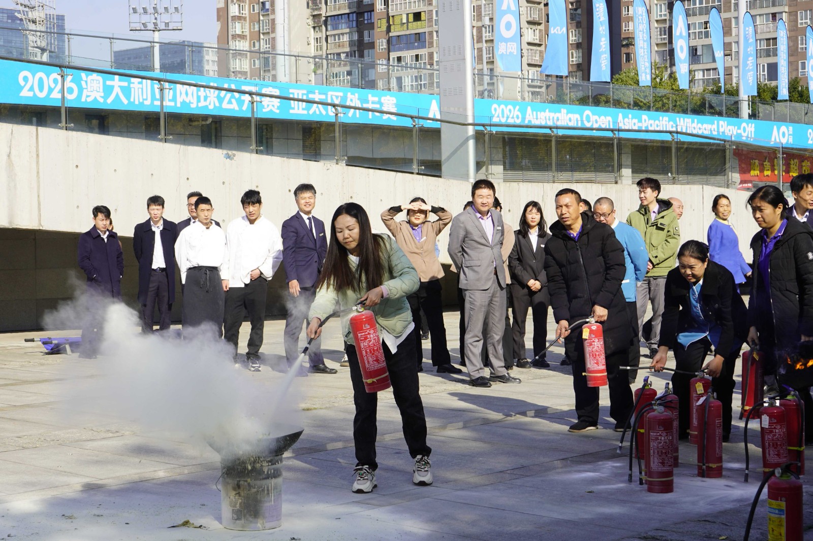 为切实推进消防宣传月活动走深走实,全面筑牢公司安全生产防线,努力为公司生产经营以及即将举办的2026澳大利亚网球公开赛亚太区外卡赛夯实安全根基,11月19日下午,四川国际网球中心组织干部职工110余人,开展了一场实战化的消防应急疏散和灭火器实操演练活动,力求以练促学、以练促防,不断提升公司广大干部职工的消防安全技能和应急处置能力。